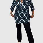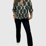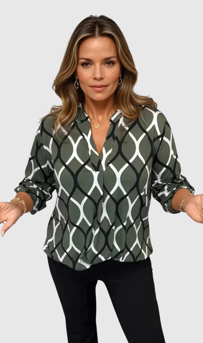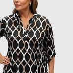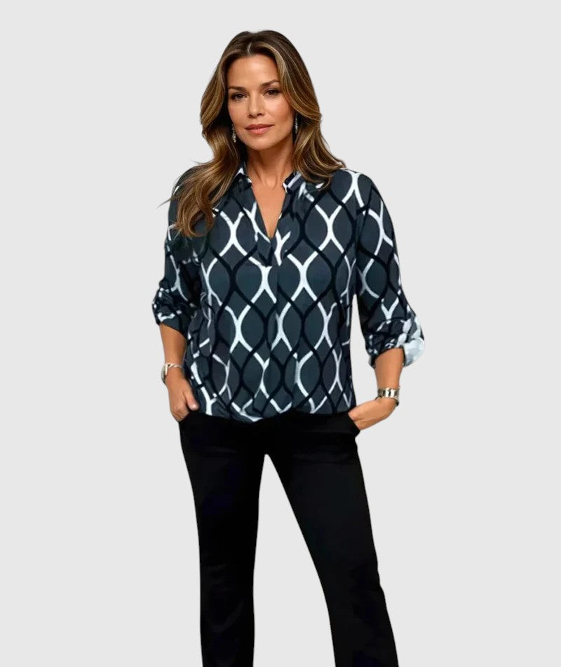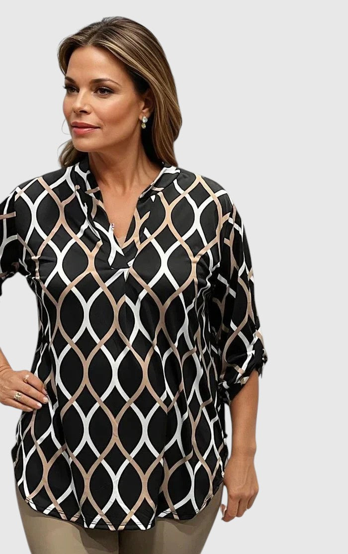 Adjon eleganciát és eredetiséget a ruhatárának a Noor blúzzal. A modern grafikus minta friss és stílusos megjelenést kölcsönöz az öltözetnek, amely könnyen felhívja a figyelmet.