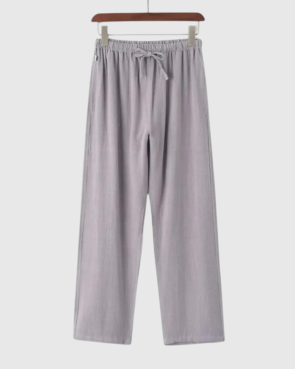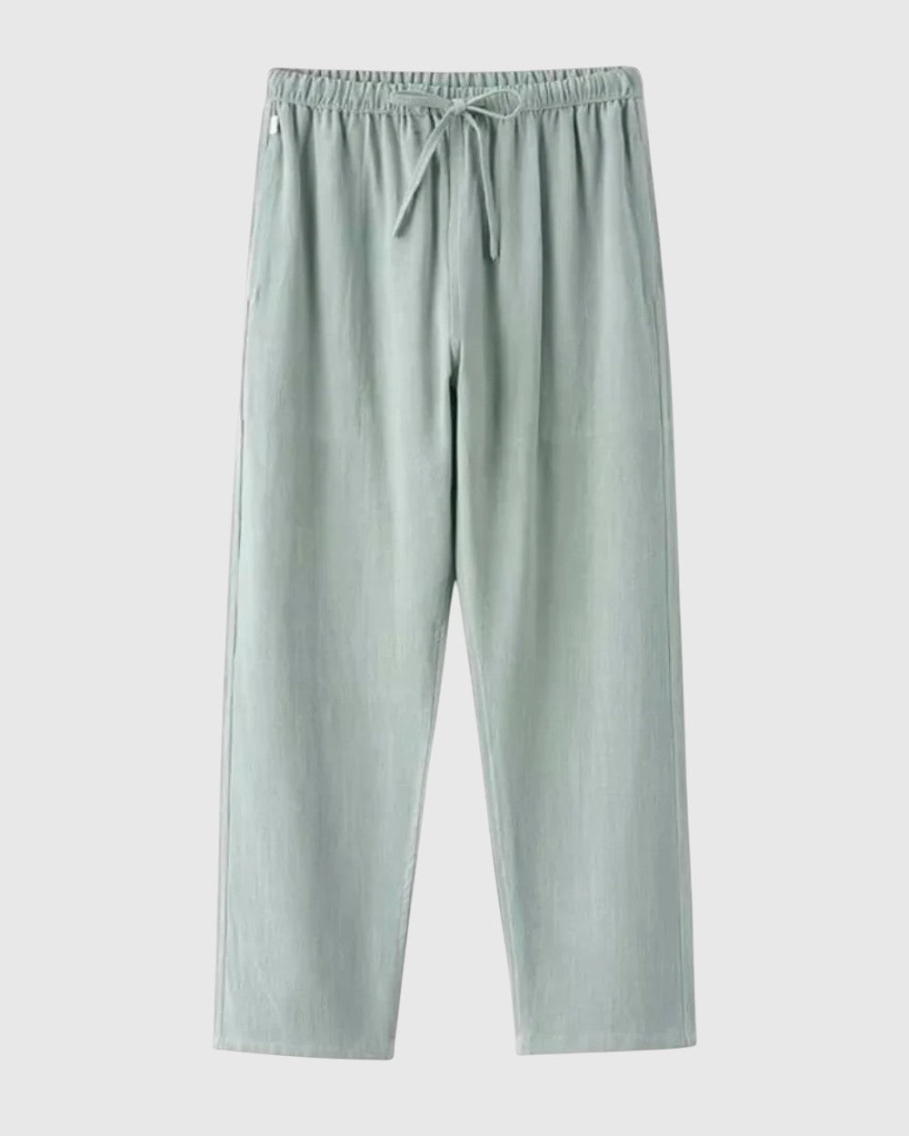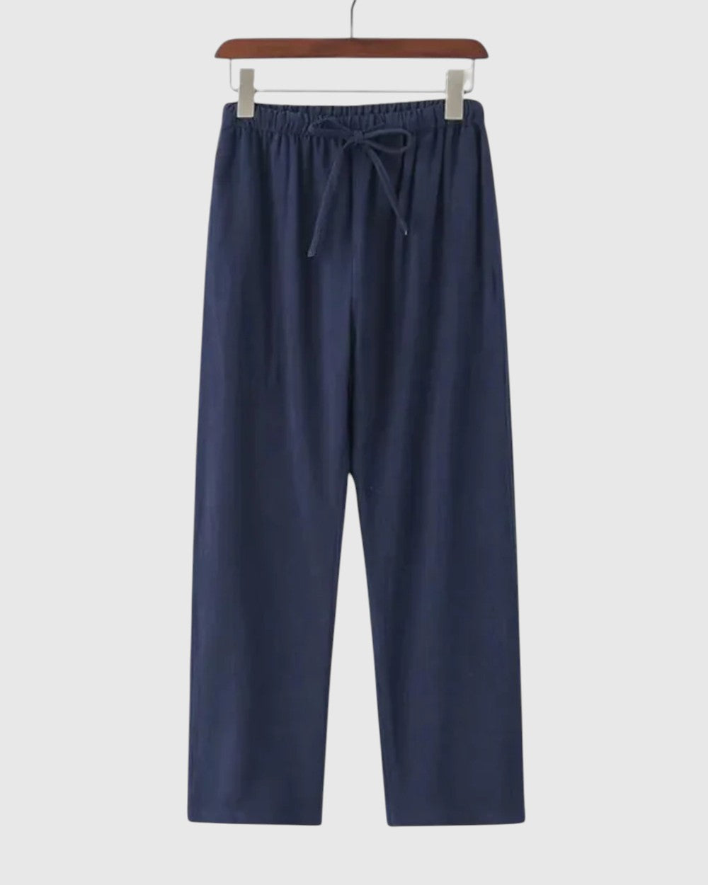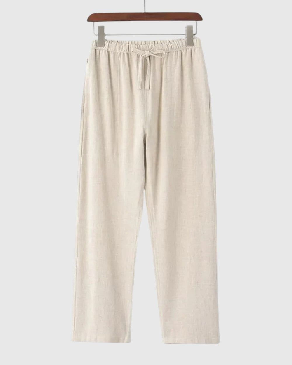 A Rió de Janeiró-i len nadrágok férfiak számára készültek, akik értékelik a könnyed, luxus eleganciát. Magas minőségű lenből készült, lélegző és légies sziluettet kínál - ideális meleg időben, üdülőhelyi öltözethez vagy smart-casual stílushoz.