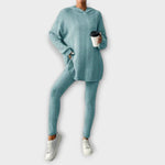 ✔️ Stílusos, összeillő szett: A megfelelő felső és nadrág stílusos, koordinált megjelenést alkot – ideális otthoni pihenéshez vagy laza kirándulásokhoz.