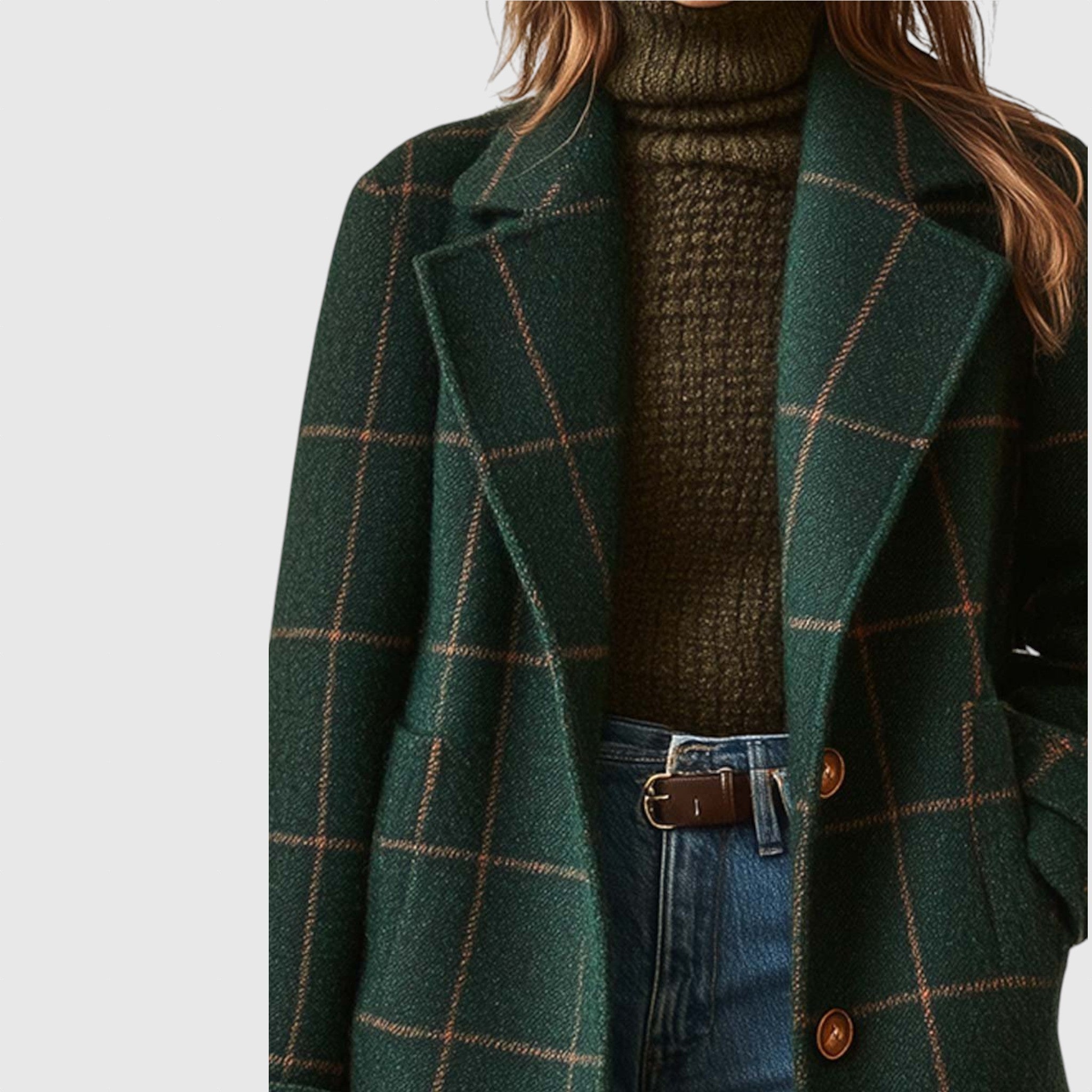 Női retro kabát gallérral és kockás mintával — időtlen, erőteljes, megkérdőjelezhetetlenül te.