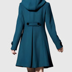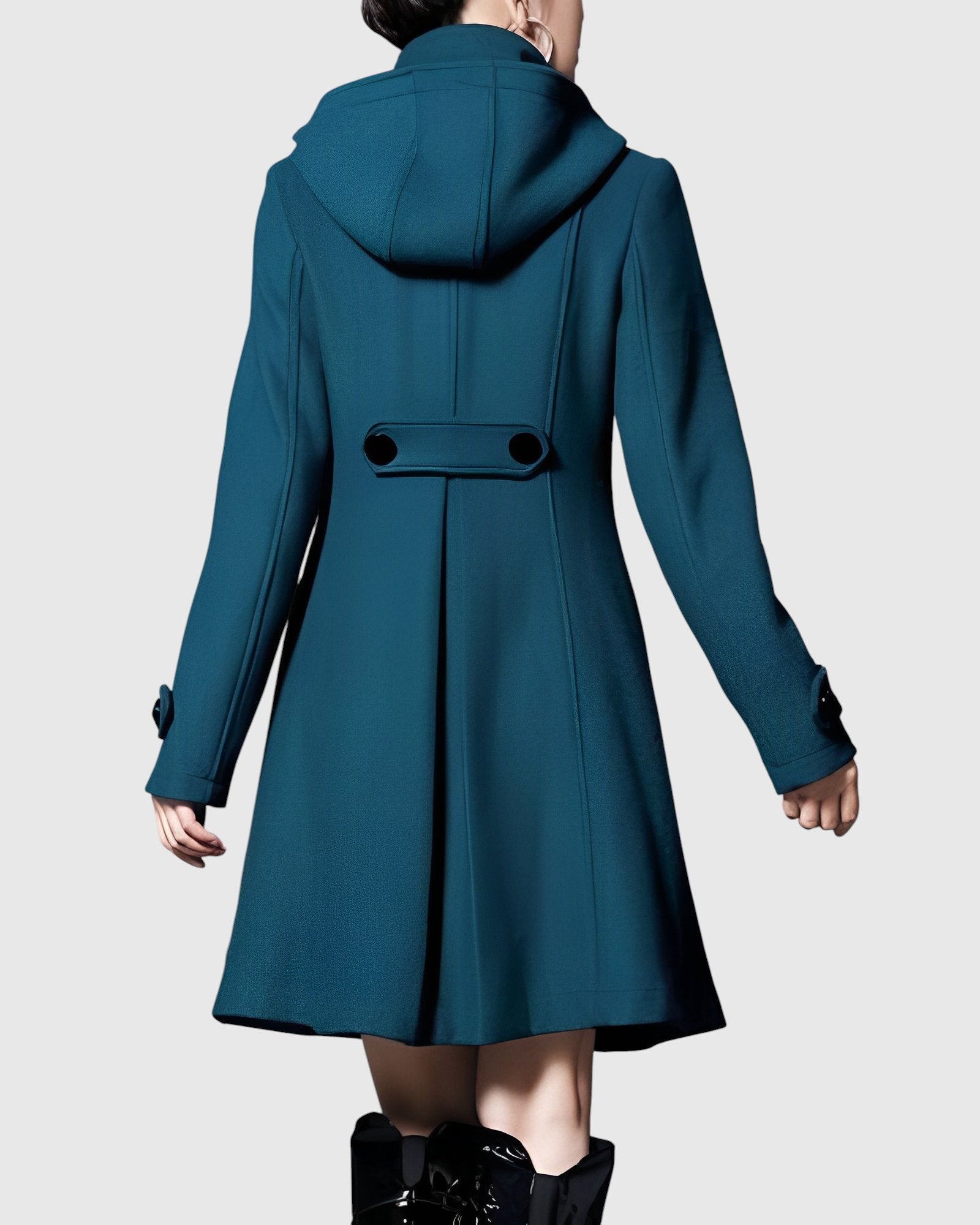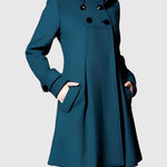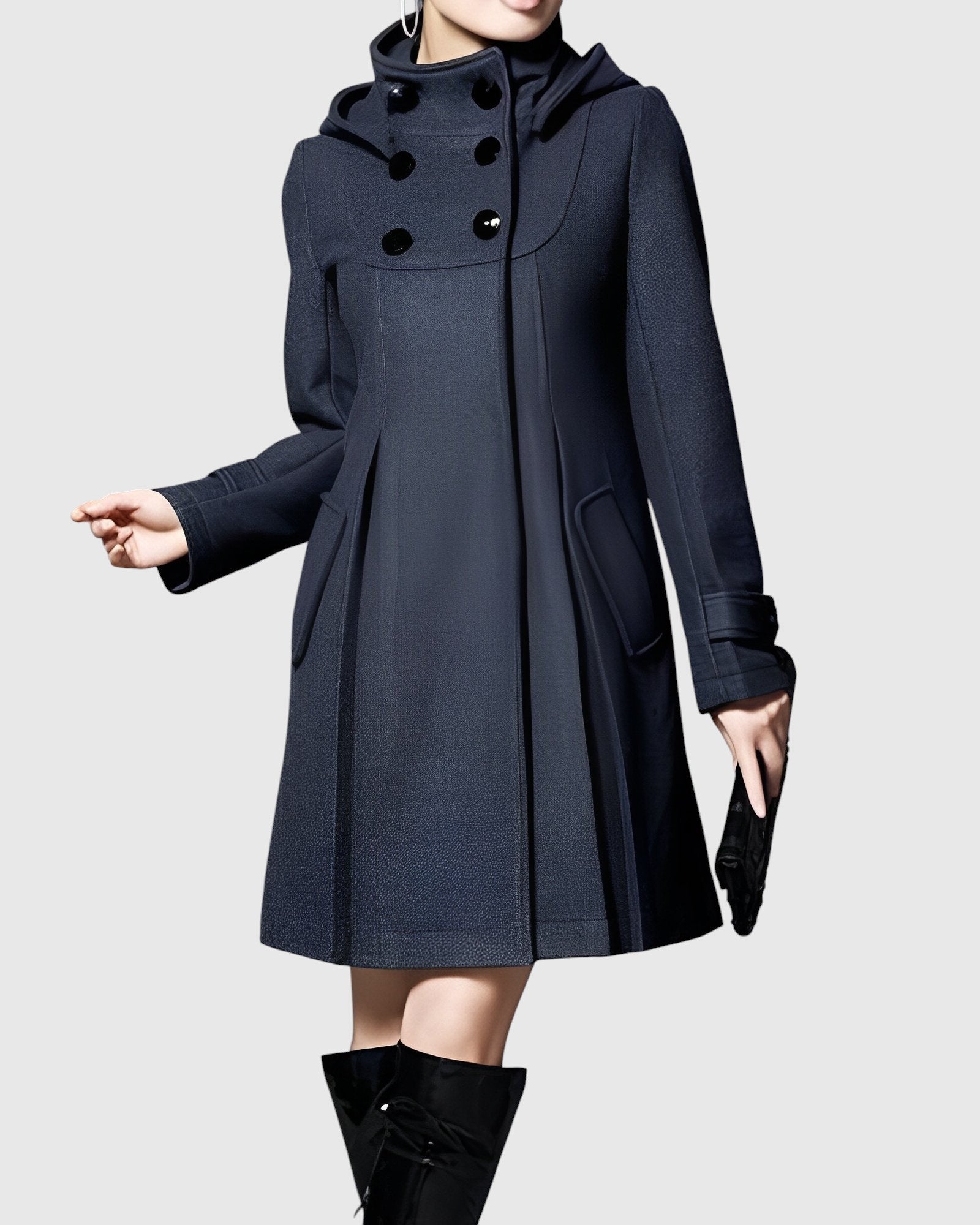 Női kabát bővülő (A-vonalú) szabással, magas gallérral és állítható kapucnival. Elöl dupla gombolás és praktikus zsebek fedéllel. Tartós, puha anyag megtartja formáját anélkül, hogy felesleges súlyt adna, a közepes hosszúság optikailag nyújtja a sziluettet. Díszített mandzsetta, precíz kivitelezés és kényelmes bélés. Univerzális választás a városban, munkában és hétvégén — csodásan kombinálható ruhákkal, szoknyákkal és farmernadrágokkal, és kiemelkedik csizmával.