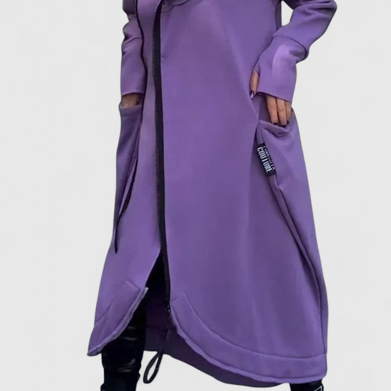 MARIE - Hosszú kabát kapucnival és cipzárral