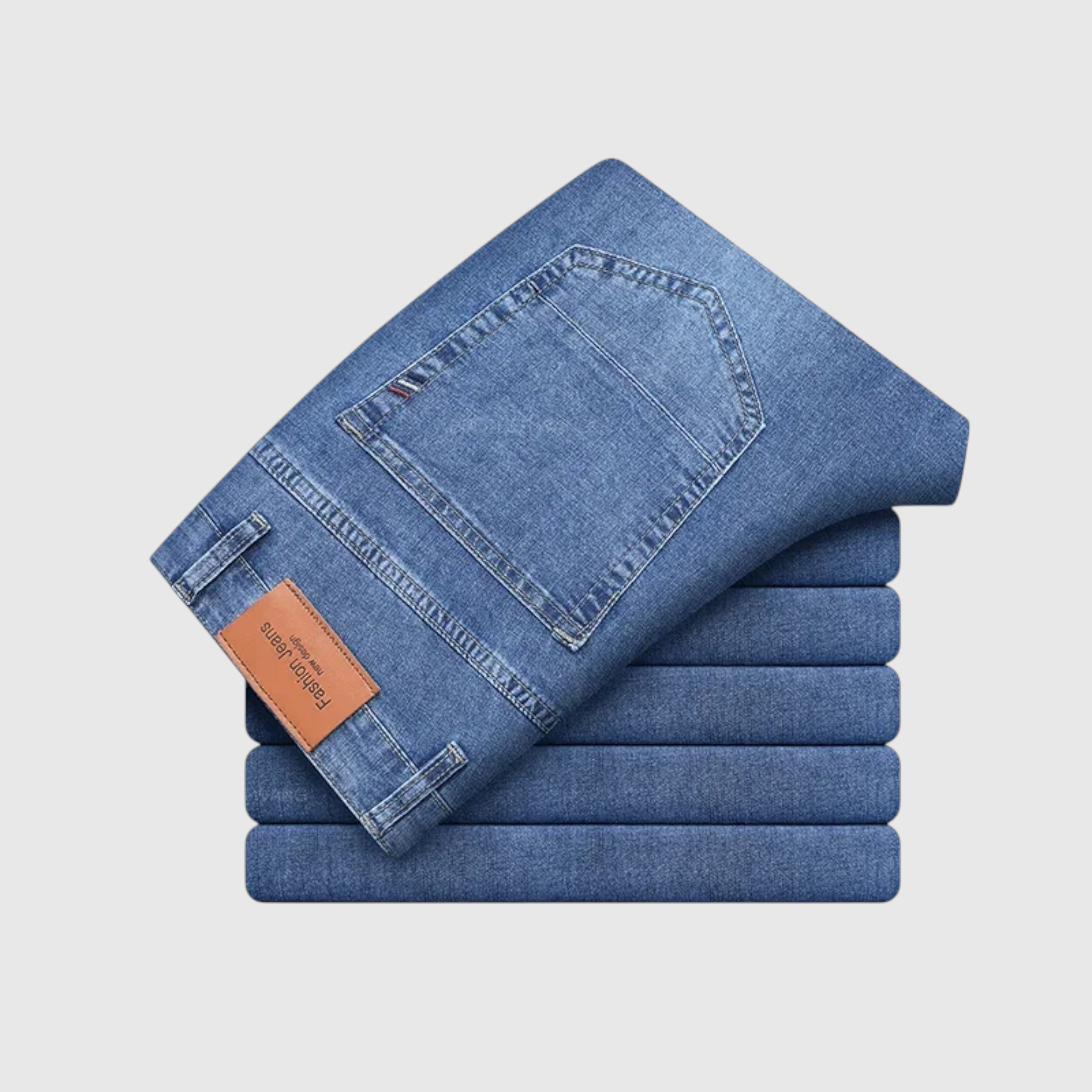A Elegant Denim farmernadrágok férfiak számára készültek, akik egészséges megjelenést keresnek a farmer anyagban egy csipetnyi kifinomultsággal. Prémium farmer anyagból készültek, kényelmes, de egyben jól formált szabással - ideálisak elegáns hétköznapi öltözetekhez, hétvégi ruhákhoz vagy napi stílushoz.