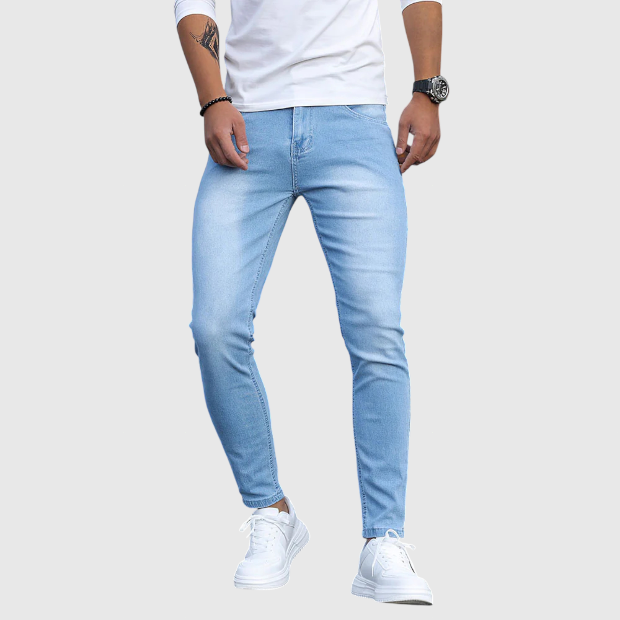 A Casual Denim farmer férfiak számára készült, akik napi használatra vágynak, kompromisszumok nélkül a stílusban. Minőségi farmerből készült, megbízható illeszkedést kínál, ideális egyensúlyban a struktúra és a kényelem között - tökéletes napi viselethez, hétvégi programokhoz vagy informális kirándulásokhoz.
