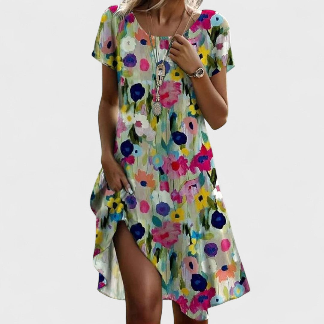 Az Éva ruha gyönyörű virágmintájával és puha anyagával örömet okoz, amely elegánsan néz ki, ugyanakkor maximálisan kényelmes. A szabad szabás és a definiált derék természetes érzést nyújt a szabadságról és a nőiességről. Kiváló választás tavaszi piknikhez, barátokkal való kávézáshoz és romantikus nyári estékre.
