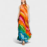 Lenyűgöző az Iris rávarrott ruhával, amely varázslatos kaszkád fodraival és festői batikolt mintájával, finom georgette anyagból készült, hogy luxus érzetet nyújtson.