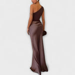 Mutasd meg eleganciádat ezzel a gyönyörű, egy vállú maxi ruhával és finom redőzéssel. A kifinomult nők számára tervezett ruha aszimmetrikus dekoltázst és finom redőket kínál, amelyek elegáns maxi sziluettet alkotnak a földig.