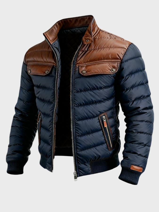 Aleksander - steppelt kék dzseki bőr betétekkel
