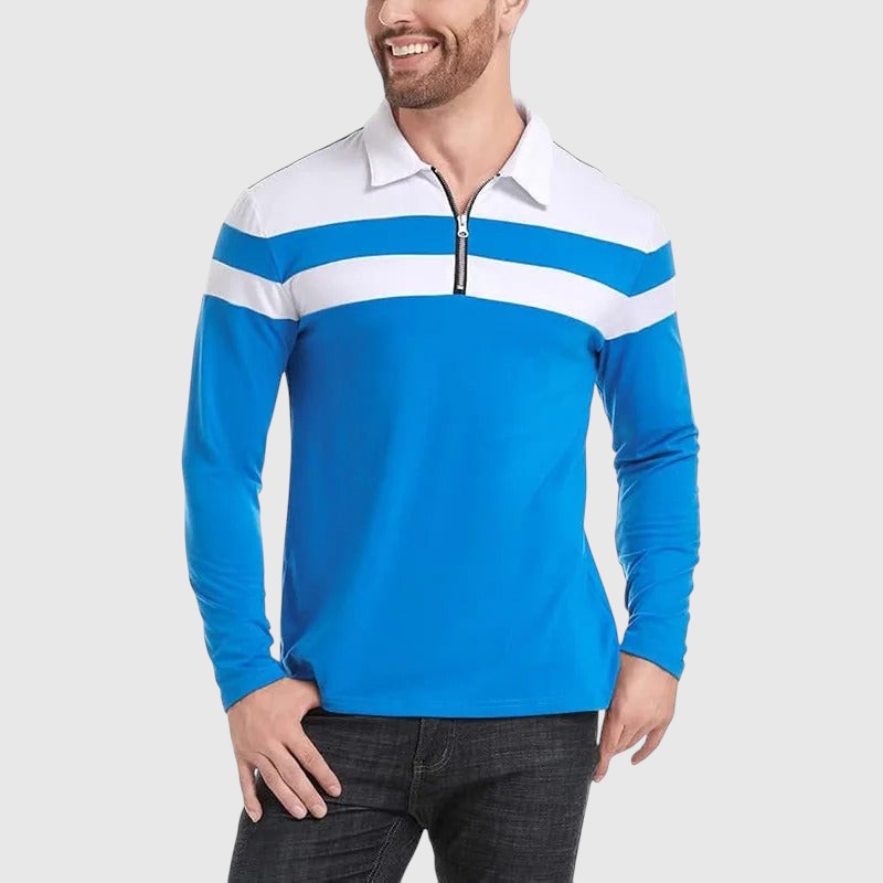Ez az elegáns pulóver cipzárral és csíkokkal olyan férfiak számára készült, akik könnyedén szeretnének stílusosan kinézni a mindennapokban. Kiváló anyagból készült, légáteresztő kényelmet kínál elegáns cipzáras kialakítással és finom csíkokkal - ideális informális sétákhoz, okosan rétegezett öltözethez vagy informális üzleti ruházathoz.
